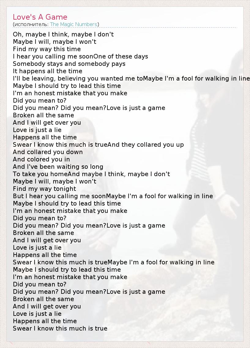 А как ты думаешь, о чем песня "Love's A Game" ?