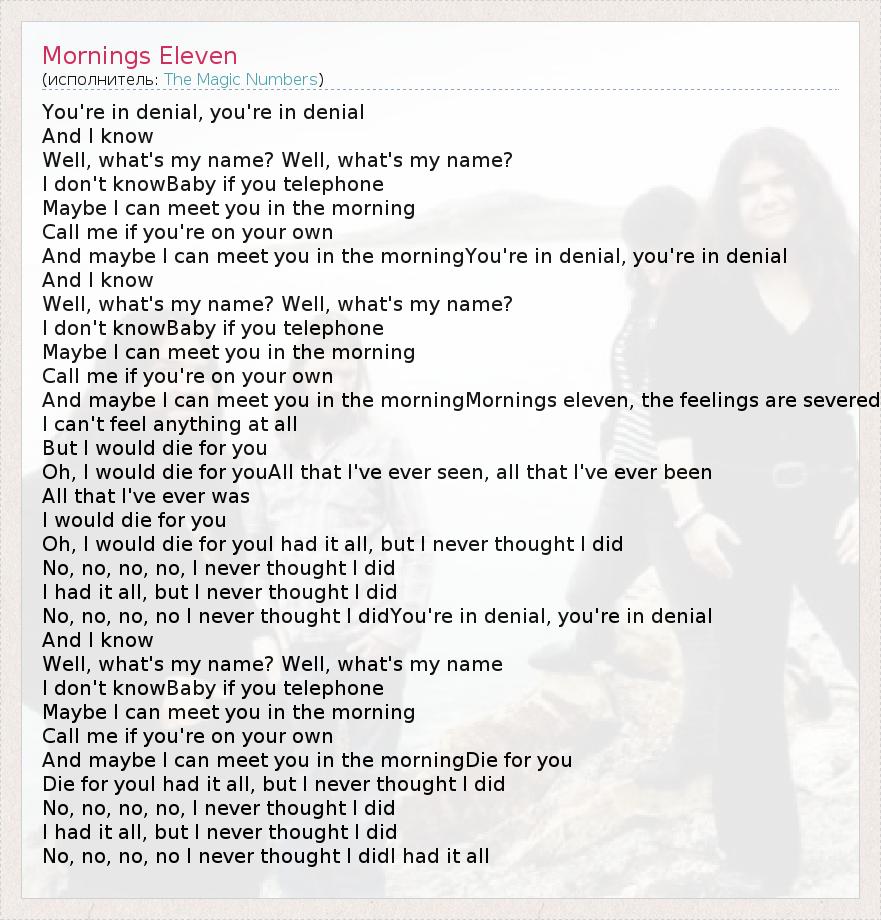 А как ты думаешь, о чем песня "Mornings Eleven" ?