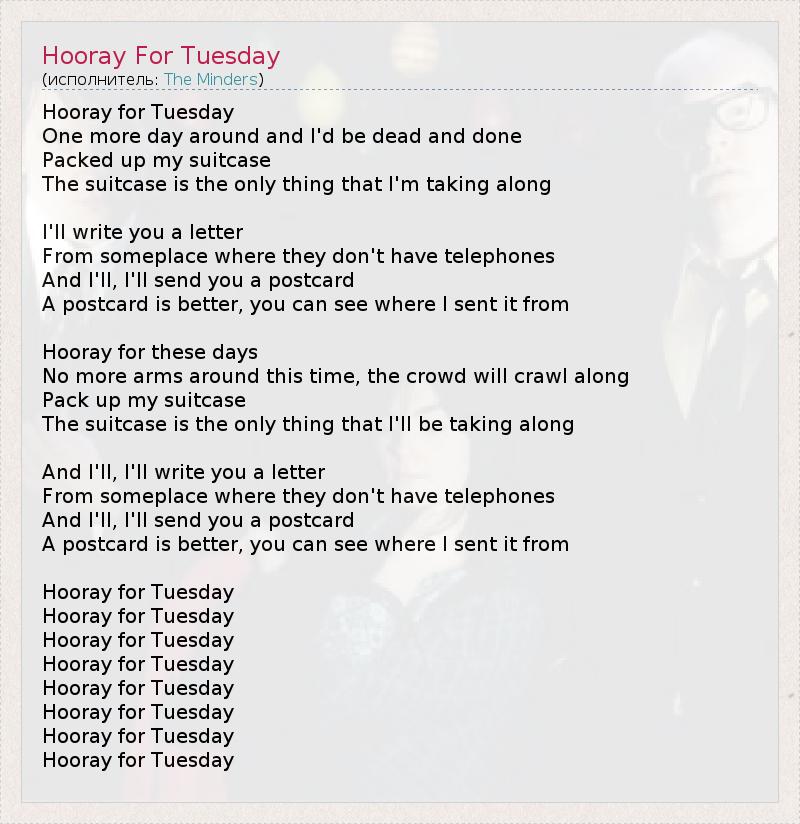 А как ты думаешь, о чем песня "Hooray For Tuesday" ?