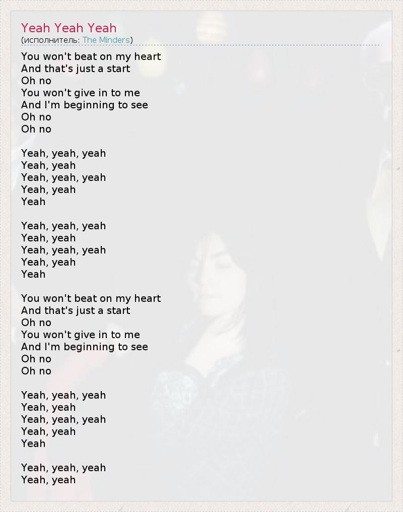 А как ты думаешь, о чем песня "Yeah Yeah Yeah" ?