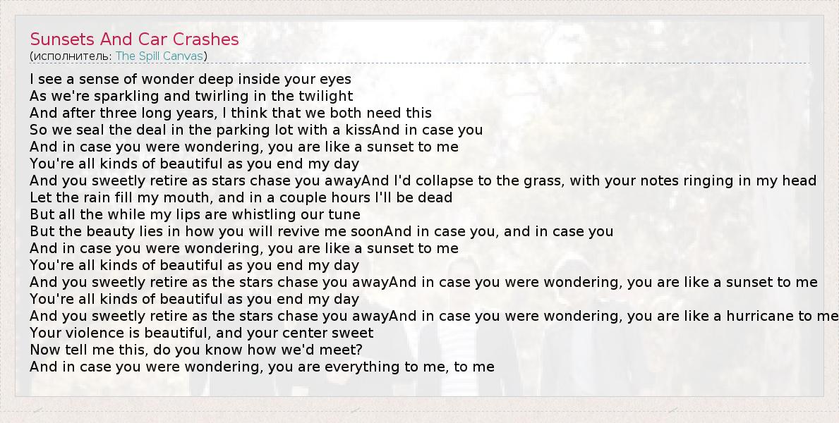 А как ты думаешь, о чем песня "Sunsets And Car Crashes" ?