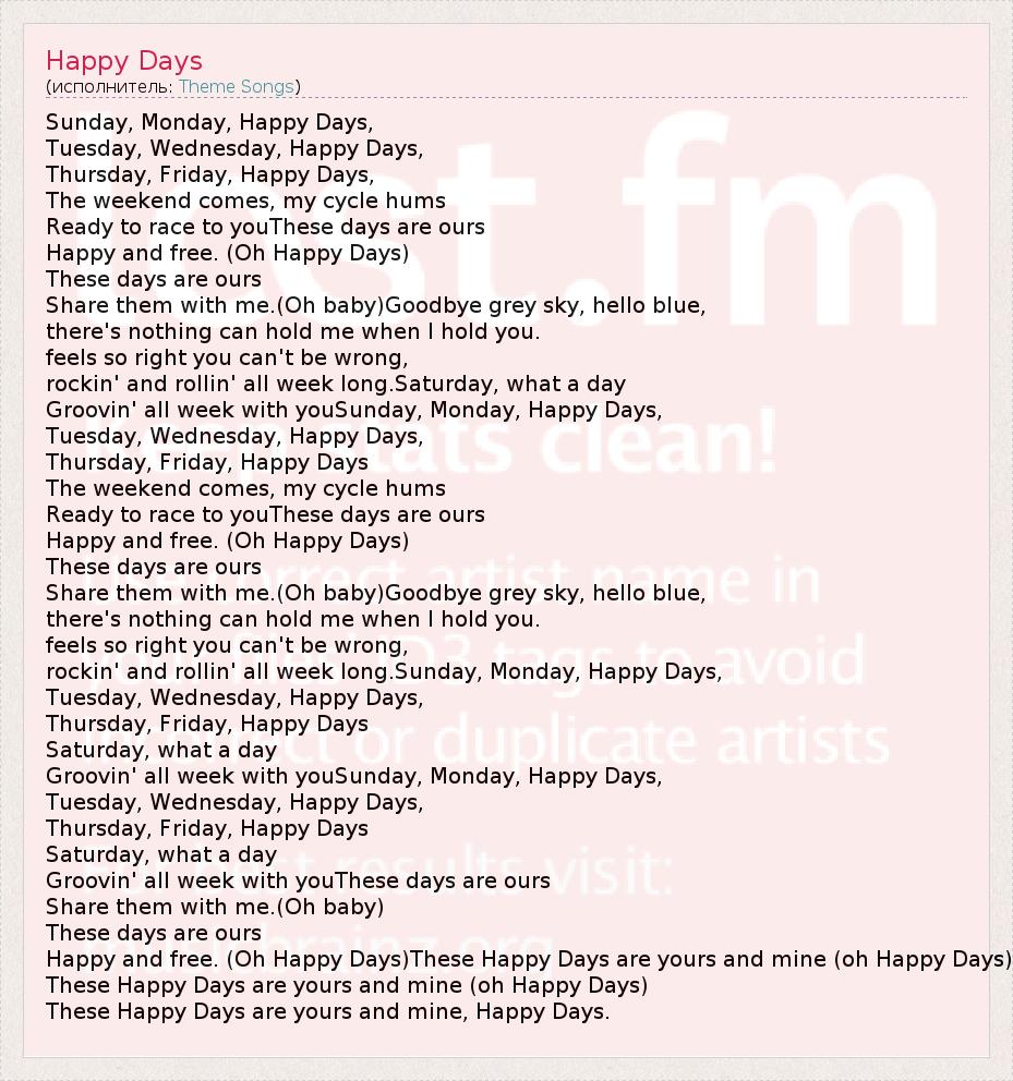 rockin' and rollin' all week long.Sunday, Monday, Happy Days,