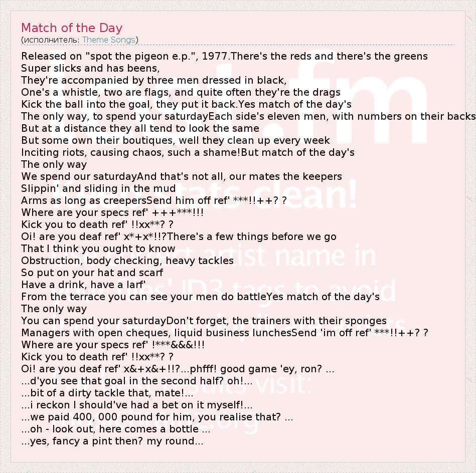 А как ты думаешь, о чем песня "Match of the Day" ?