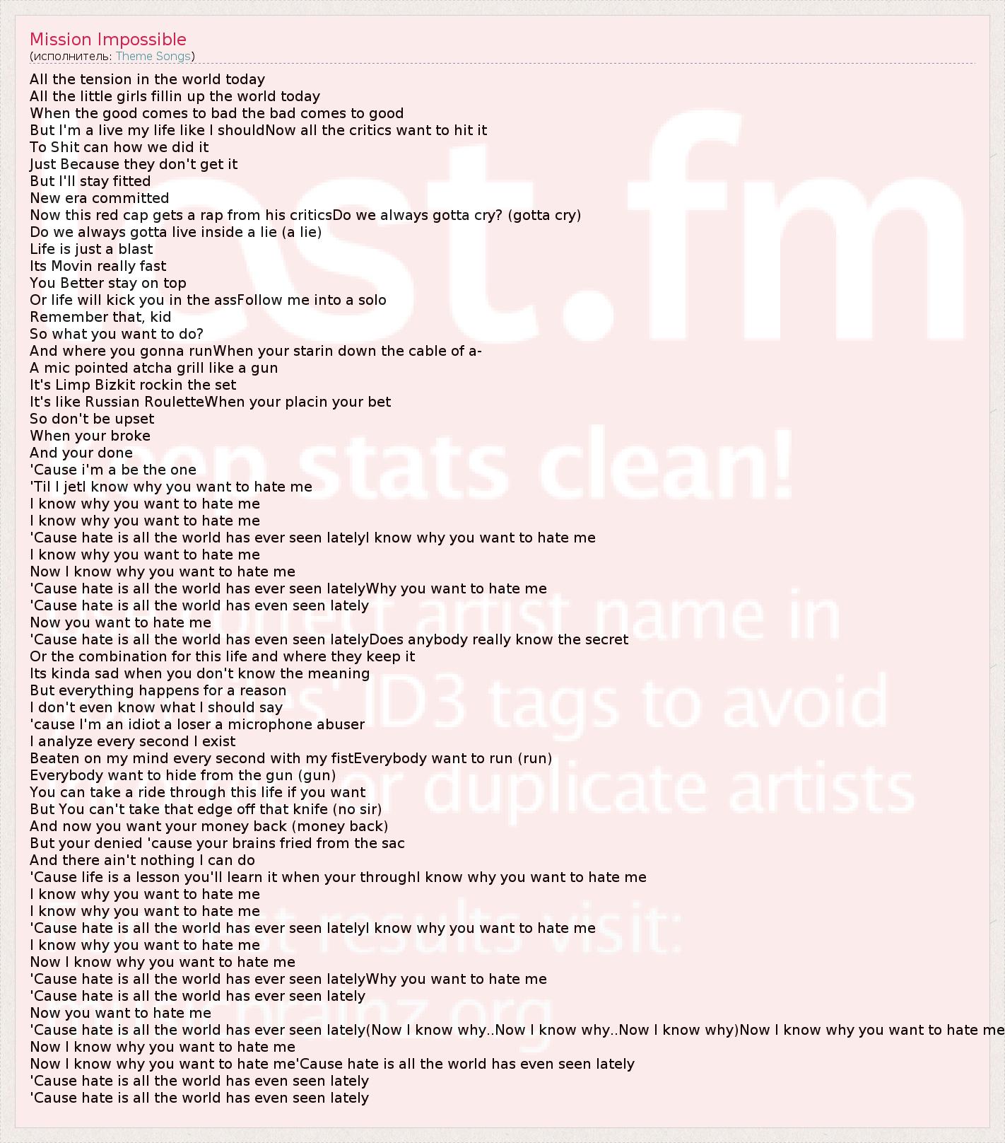 А как ты думаешь, о чем песня "Mission Impossible" ?