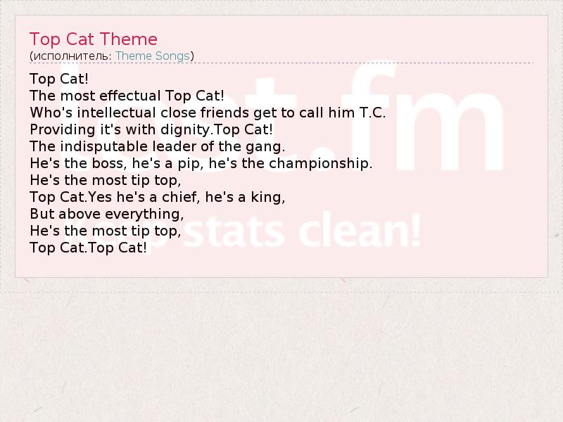А как ты думаешь, о чем песня "Top Cat Theme" ?