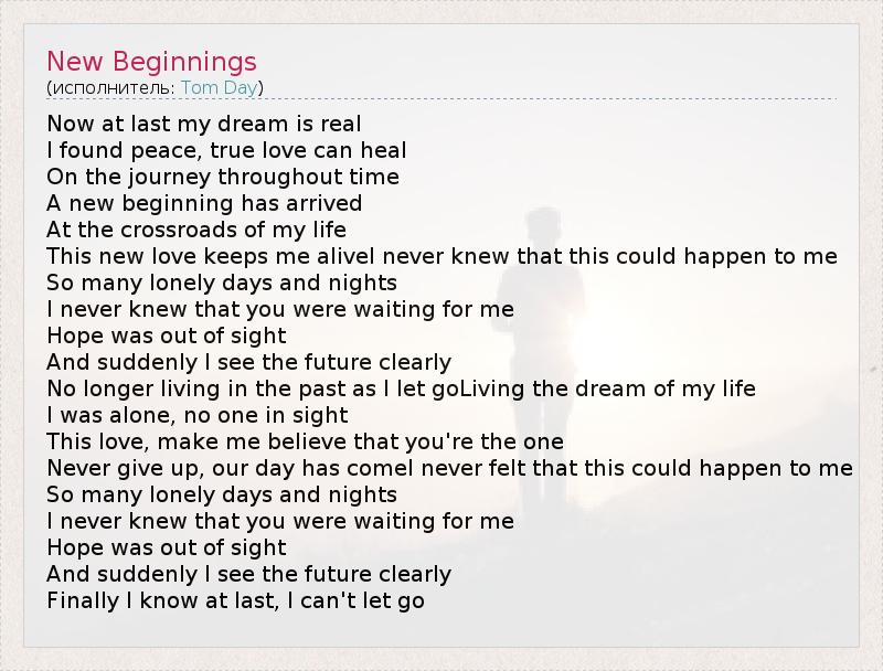А как ты думаешь, о чем песня "New Beginnings" ?
