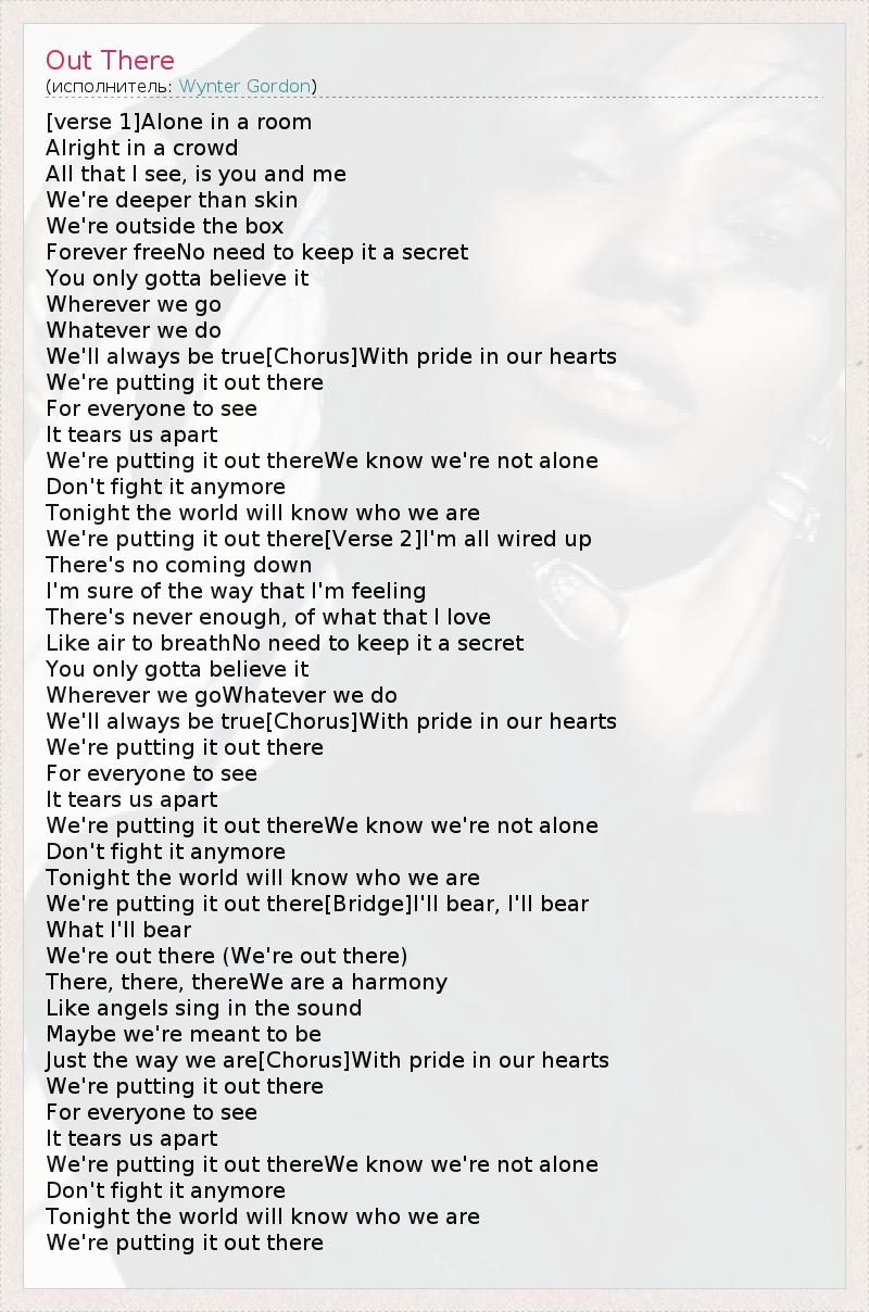 А как ты думаешь, о чем песня "Out There" ?