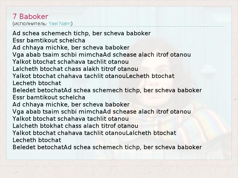 А как ты думаешь, о чем песня "7 Baboker" ?