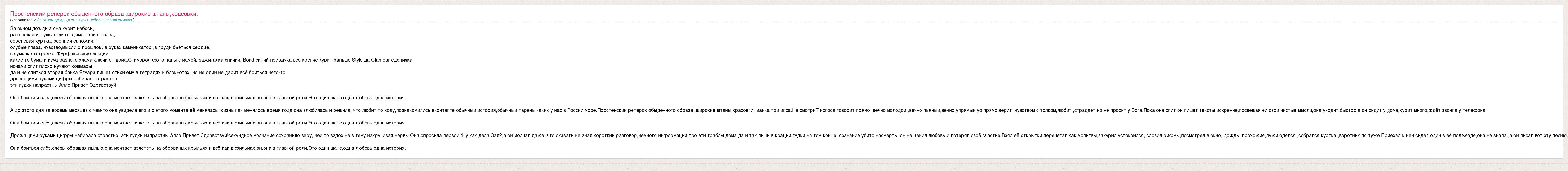 А как ты думаешь, о чем песня "За окном дождь,а она курит небось" ?