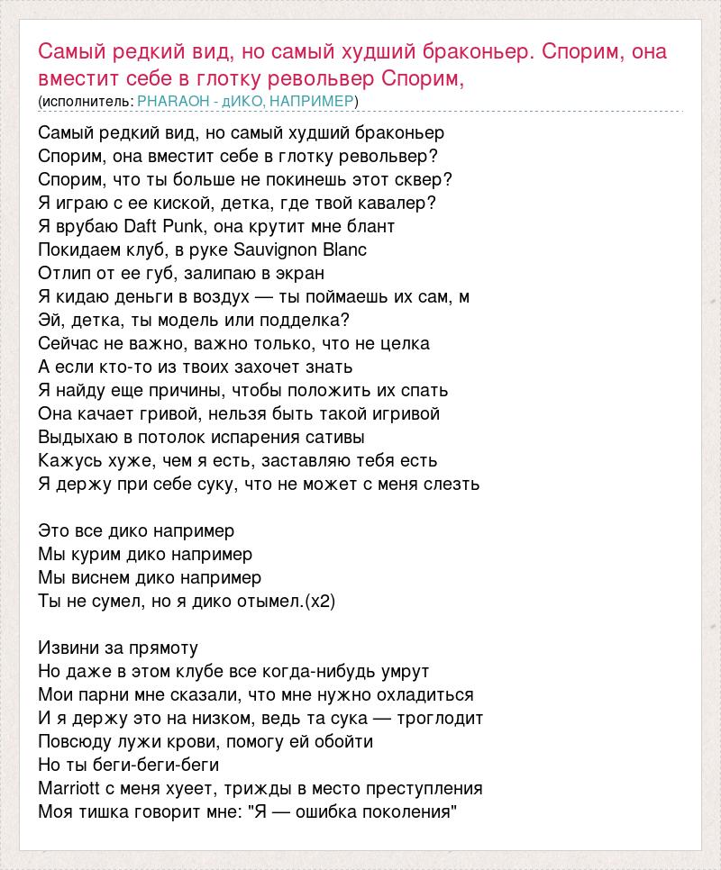 Главная→Исполнители→PHARAOH - дИКО, НАПРИМЕР→Самый редкий вид, но самый худший браконьер. Спорим, она вместит себе в глотку р